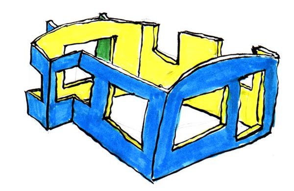 4 x 6,2 x 2,6 m high, plasterboard and paintExhibition: Autour d’une passion (9). Château de Fraïssé