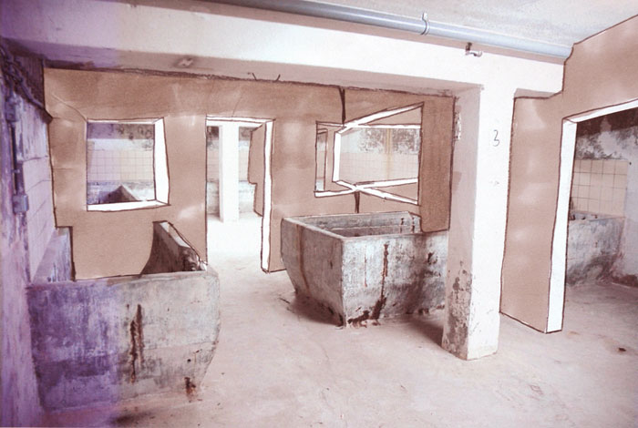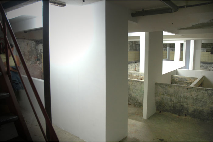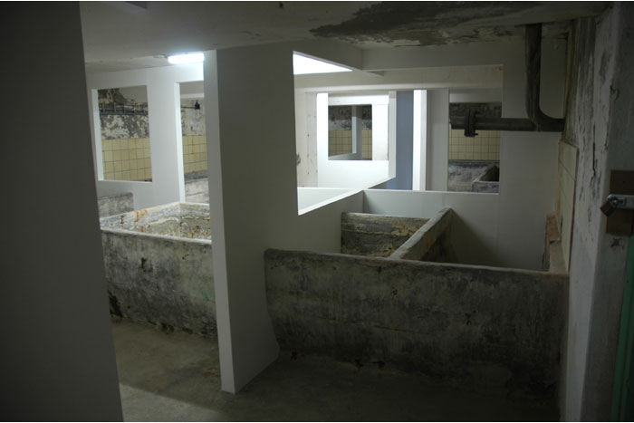 9.80 x 5.80 x 2.40 m, organised by the KIK Foundation,Temporary site–specific work in the basement of the former milk and cheese factory.Photo: Ruud Pols.