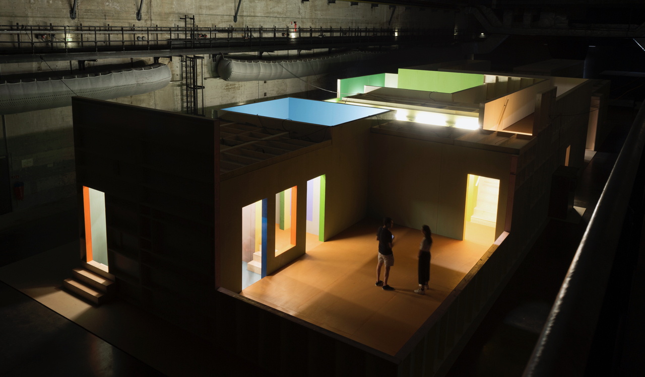 ‘Of Volums and Voids’ was created specifically for Bay 14 of the former German submarine base in Saint Nazaire, on the West French Coast. This installation included a series of interconnecting spaces, each with with own mood, that offered many possiblities as to how they were to be entered and exited by the viewers.
