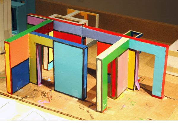 7,7 x 3,7 x 2,5m height; wood board and paint