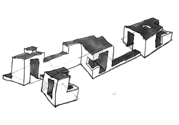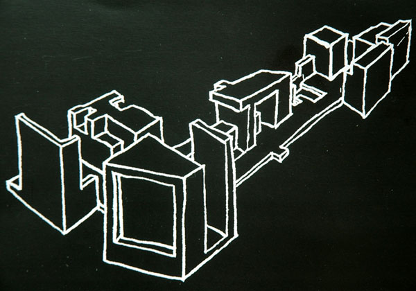A complete black structure runs on all the spaces of the narrow gallery engulfing the office desk is integrated into its path. Photos: André Morin